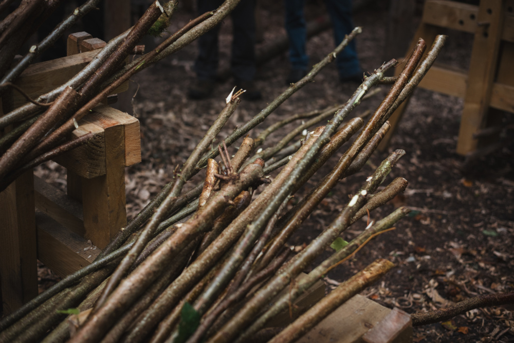 - Splitting and weaving with hazel to create hurdles and baskets.