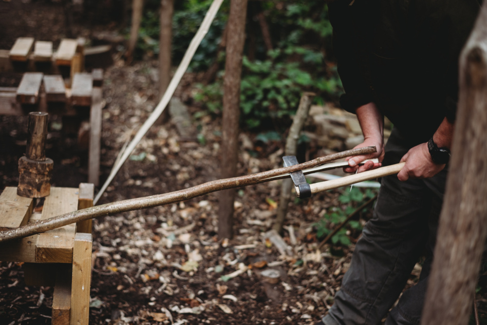 - Using traditional green woodwork devices to cleave and shape green coppice wood.